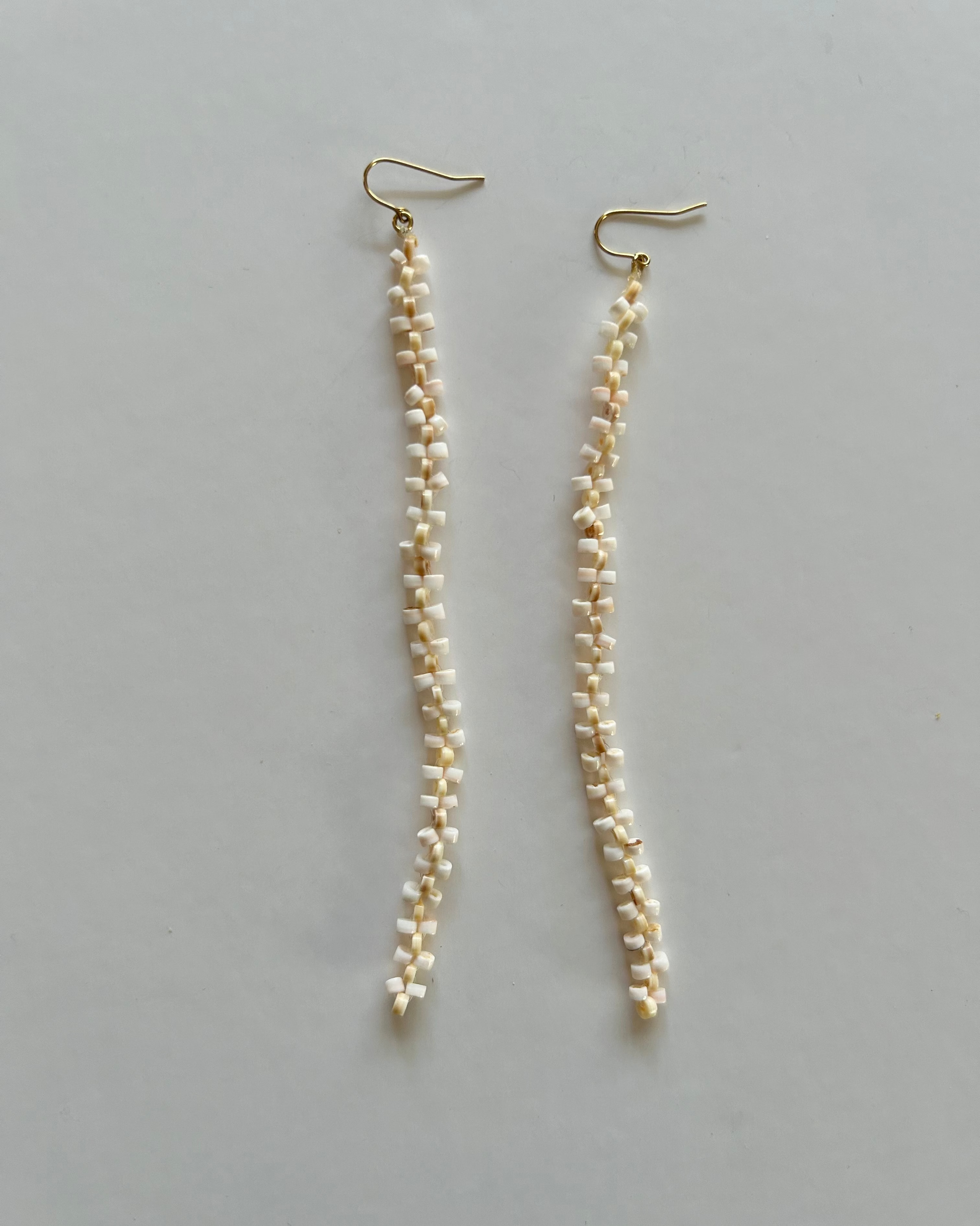 自然が奏でるリズムを貝殻ビーズで表現したロングピアス。
