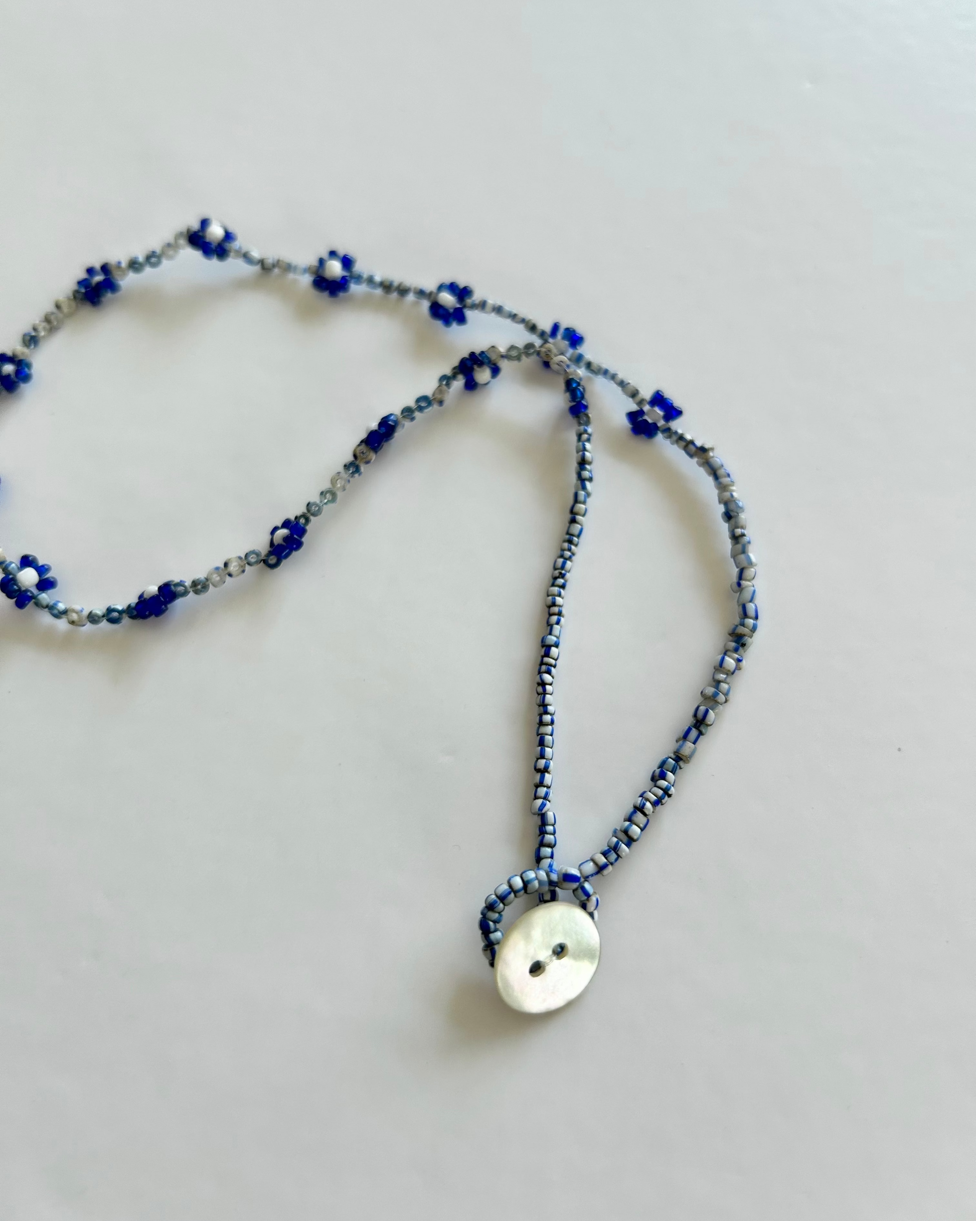 インド・ミャンマー国境近くに住むナガ族が使用していたヴィンテージガラスビーズネックレスをリメイクした、フラワーモチーフネックレス。